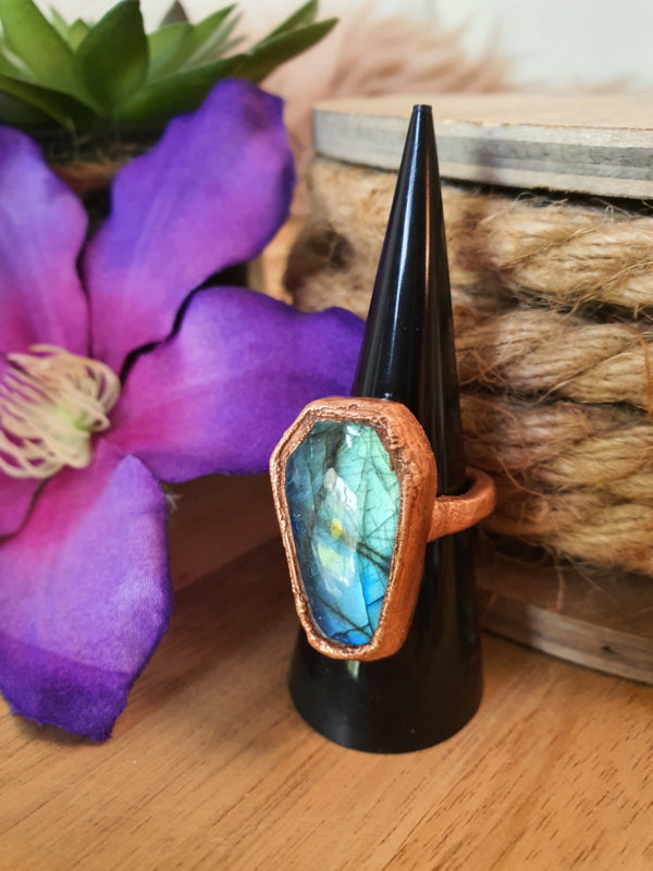 Deze mooie Labradoriet ring is created by me (Cinsis) :) en is gemaakt met koper. Het is zoals je op de foto ziet een flinke ring :) dus als je van klein en fijn houdt is deze niet geschikt voor jou.