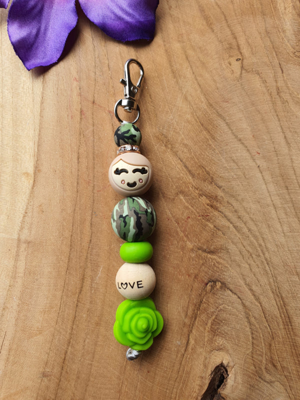 Elk gelukspoppetje is uniek en heeft zijn eigen charme. Er is keuze uit verschillende variaties gelukspoppetjes. Deze gelukspoppetjes bevatten duurzame siliconen en houten kralen en zijn handgemaakt. Je kan kiezen uit verschillende kleuren variaties kleren en haren. Hier zie je alleen een vrouwelijke variatie met een houten kraal waar 'Love' op staat gedrukt. Liever een ander woord of geheel andere variatie /kleur? Kijk dan op de algemene gelukspoppetjes pagina met het volledige overzicht.
