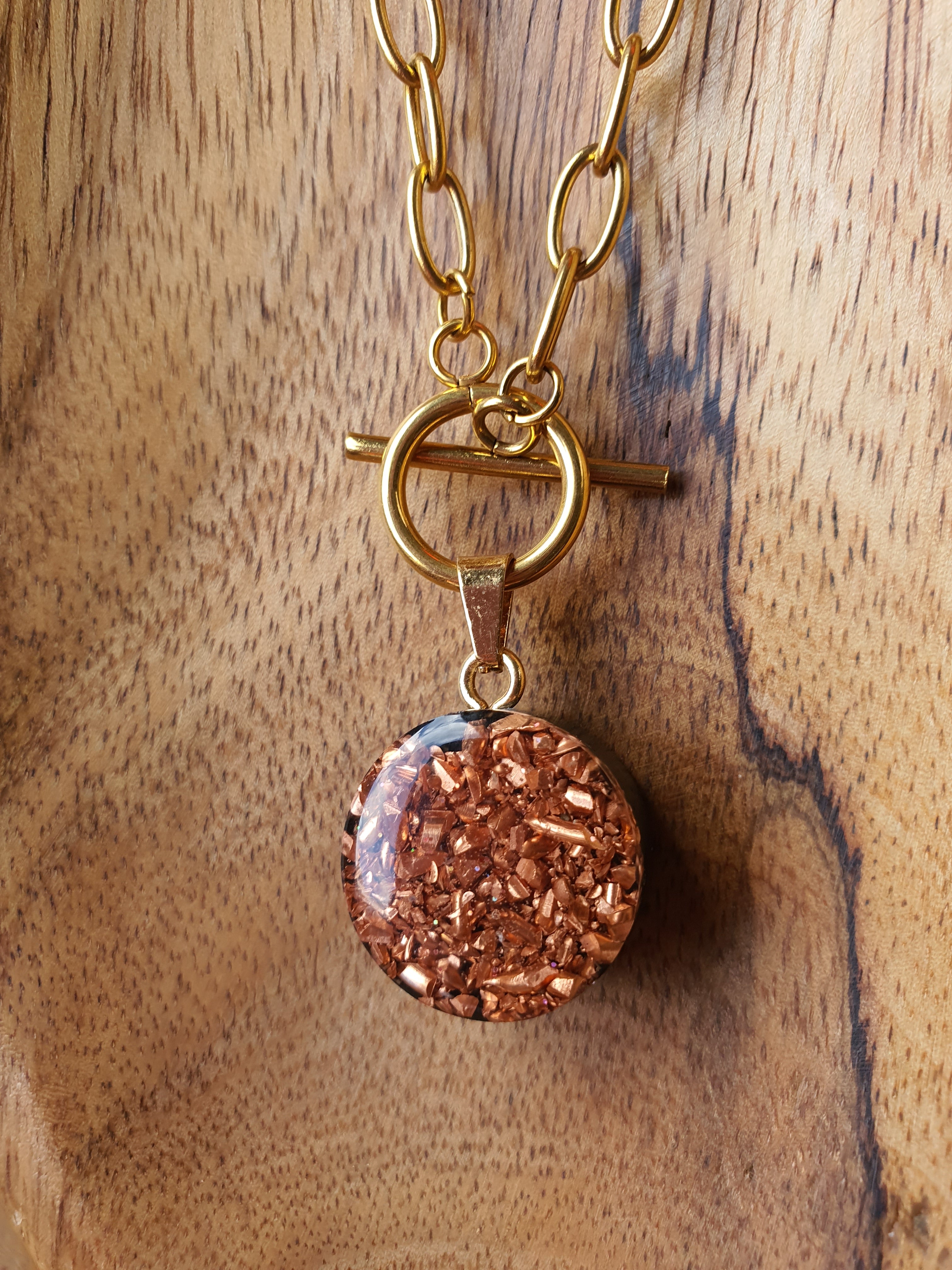 Cinsis Orgonite mix: orgonite Hanger + RVS Goud ketting nr 3002