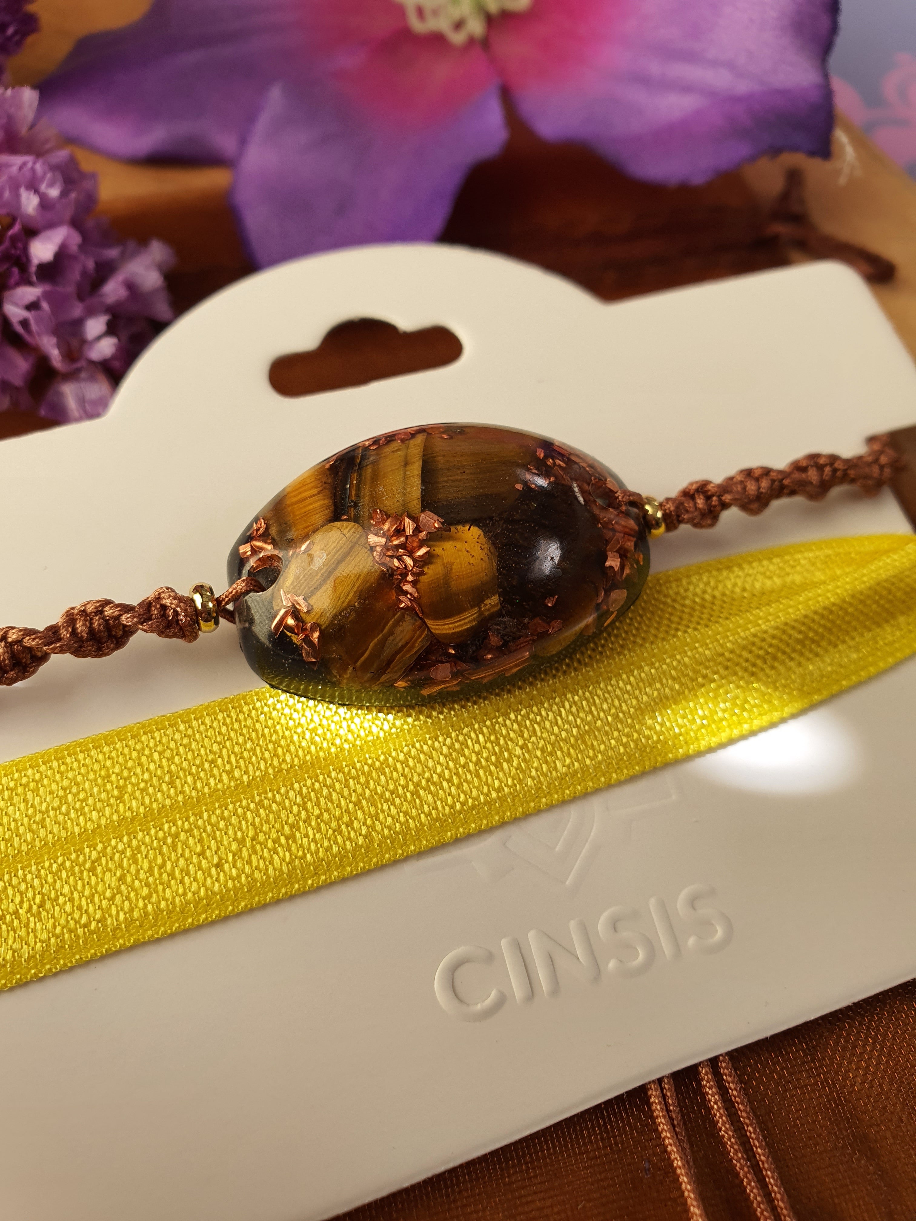 Deze orgonite armband bestaat uit Tijgeroog, Bergkristal en koper. Meer uitleg? Lees hieronder meer over deze armband: