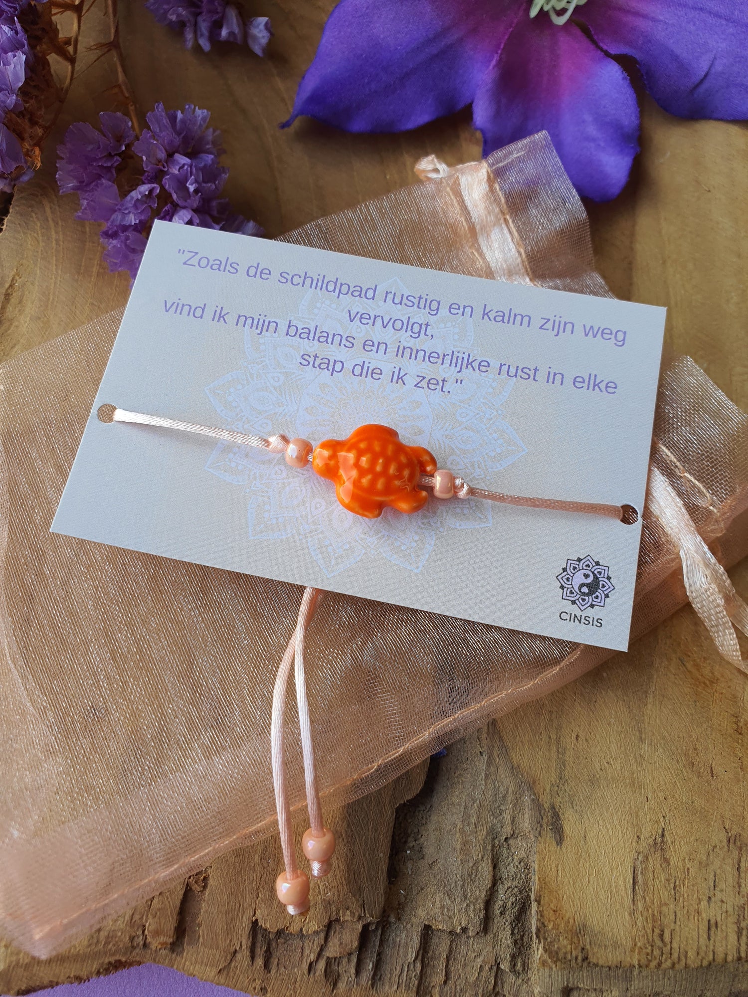 Bij het schildpad armbandje ontvang je een prachtig kaartje met een inspirerende tekst. De affirmatie op het kaartje luidt: